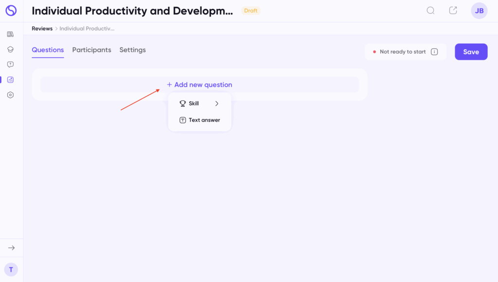 To start creating the survey, click on “Add New Question” and select the type of question.