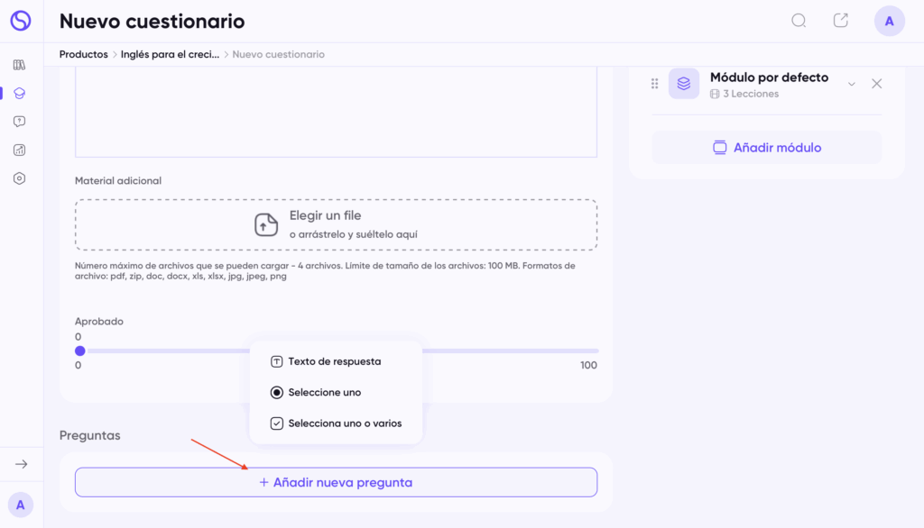 Al hacer clic en esta opción, se abrirá una ventana donde podrá elegir entre tres tipos de preguntas: