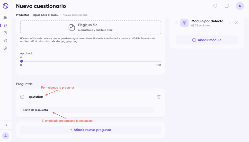 Texto de respuesta: formulamos una pregunta y el empleado proporciona la respuesta en forma de texto de forma independiente.
