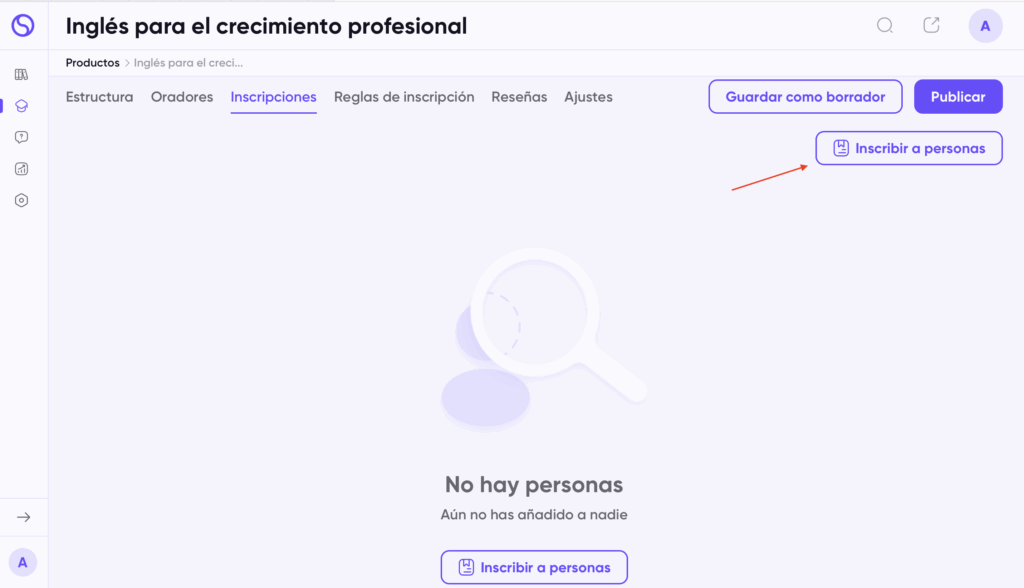 Para otorgar acceso, haga clic en el botón “Inscribir personas”.