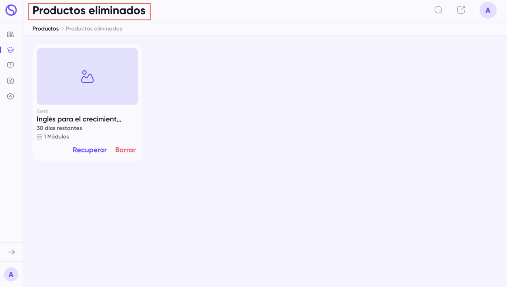 - Borrar – moverá el curso o la trayectoria a la papelera, donde podrá elegir si eliminarlo permanentemente del sistema o restaurarlo. Los materiales eliminados se guardan en la papelera durante 30 días.