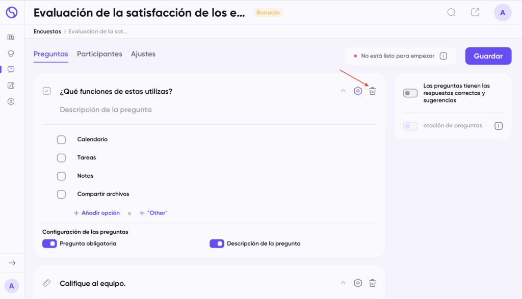 Si es necesario, se puede eliminar la pregunta haciendo clic en el ícono de la papelera.