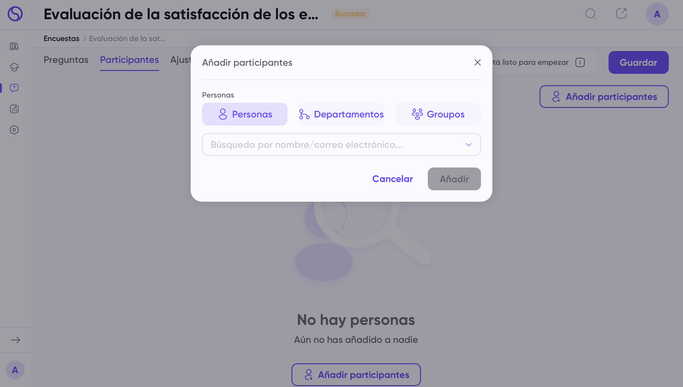 En esta sección, añadimos a los empleados que participarán en la encuesta.