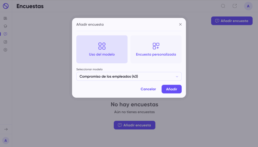 Para crear una encuesta, haga clic en el botón “Añadir encuesta”.