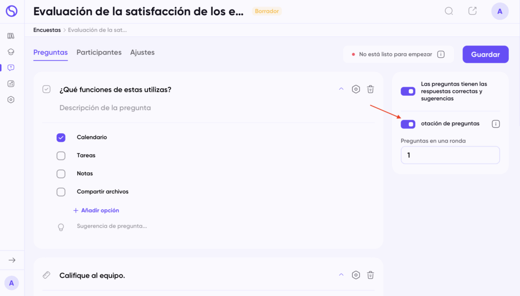 Al activar esta función, en la sección “Preguntas” aparecerá la opción “Rotación de preguntas”.