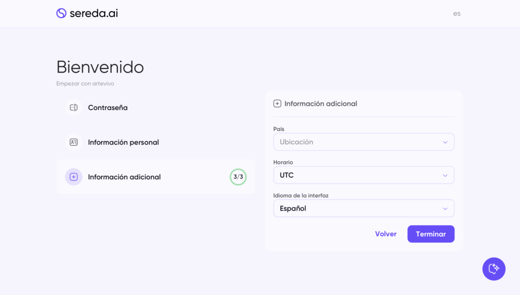 Elija su ubicación, zona horaria y configure el idioma de la interfaz.