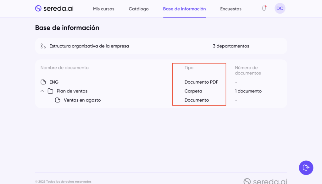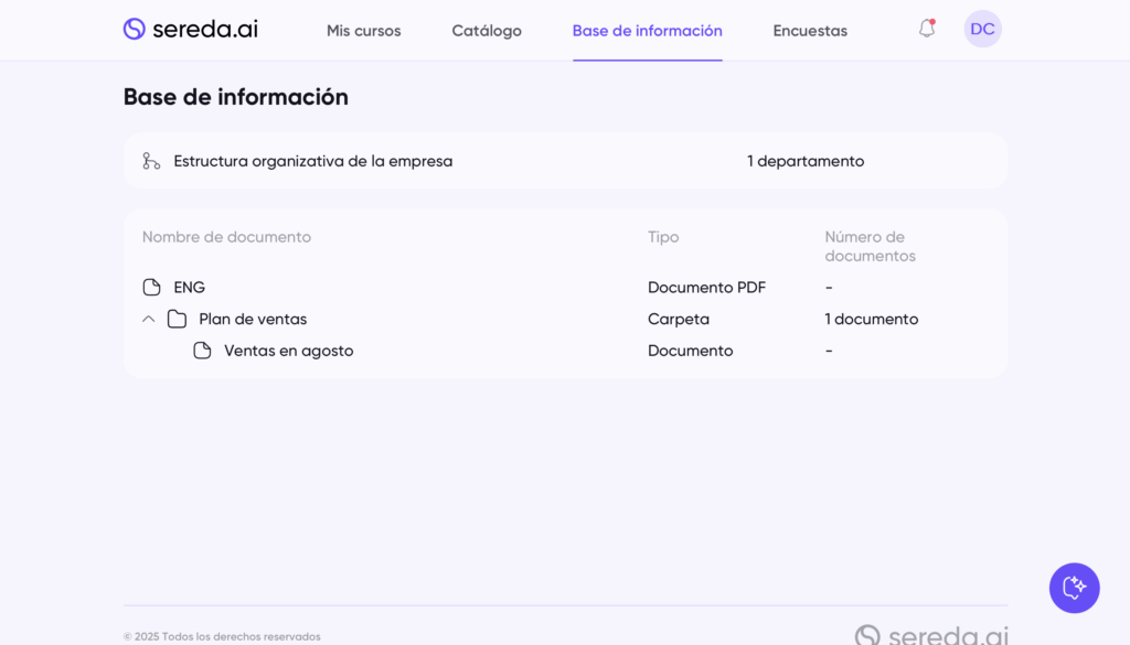 La sección “Base de información” está creada para almacenar y organizar los documentos y materiales de la empresa. Es el lugar donde los empleados tienen acceso a la información necesaria y actualizada.