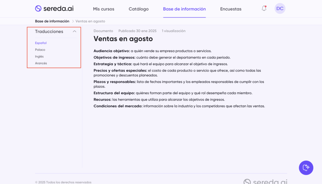 Los documentos de texto se pueden visualizar directamente en la plataforma, abriéndolos para familiarizarse con su contenido. Además, los documentos pueden estar disponibles en varios idiomas.