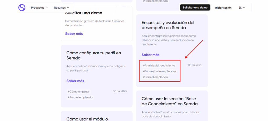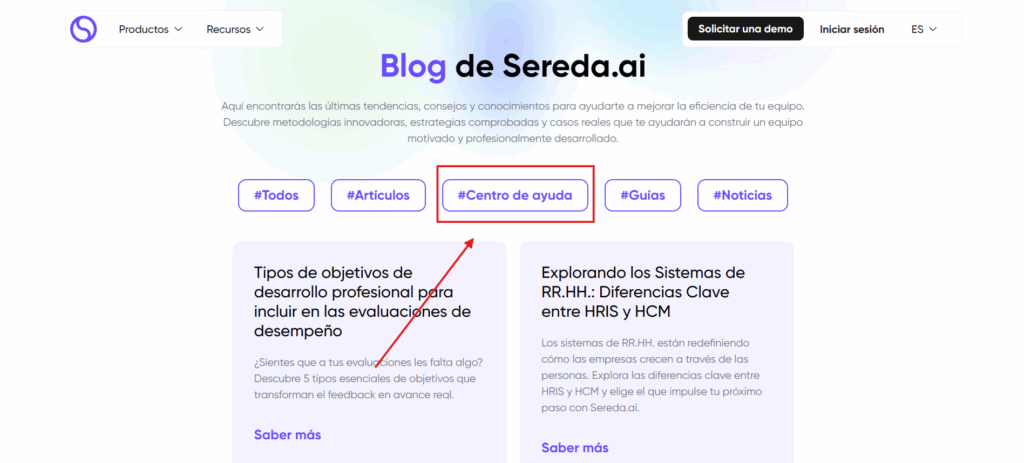 El Centro de Ayuda es tu espacio de autoaprendizaje para conocer cómo funciona Sereda.ai. Está lleno de artículos que te explican paso a paso cada función clave: desde configurar tu base de conocimientos hasta lanzar encuestas y evaluaciones de desempeño. Y una buena noticia: está disponible en varios idiomas, así que todo tu equipo podrá seguir las instrucciones sin problema.