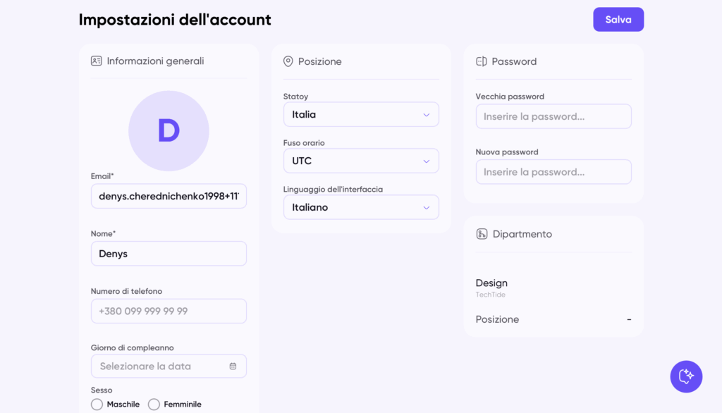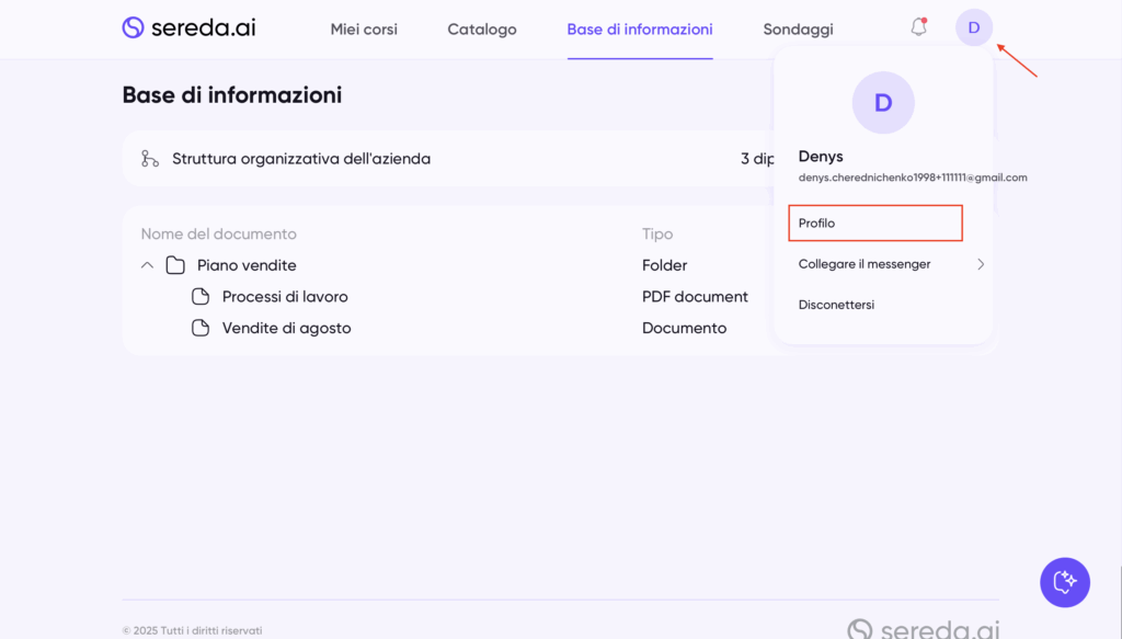 La sezione “Profilo” è destinata a salvare e gestire le tue informazioni personali sulla piattaforma.
