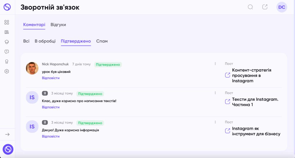 “Підтверджено” – коментарі, які було схвалено, будуть відображатися в підтверджених. Якщо коментар підтверджено, це означає, що він пройшов перевірку і вважається прийнятним для публікації. Це дозволяє іншим користувачам бачити його.