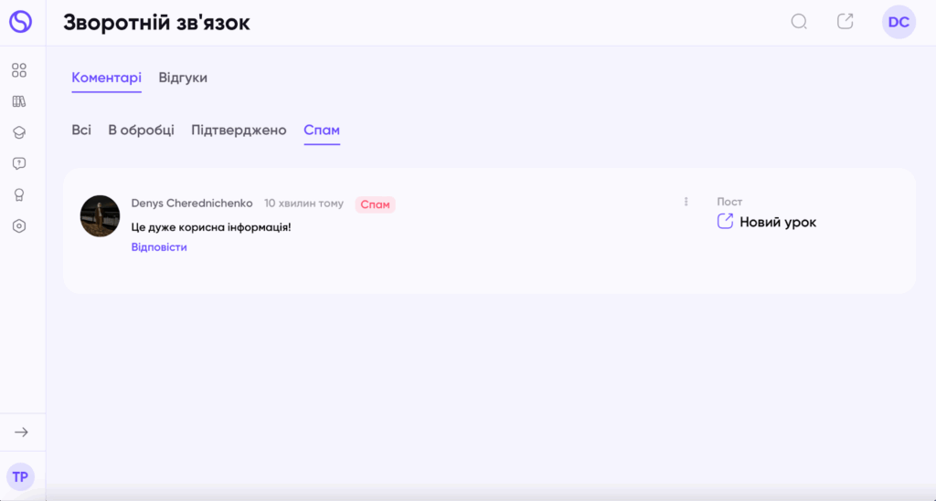 У вкладці “Спам” відображатимуться коментарі, які ви вважаєте невідповідними.