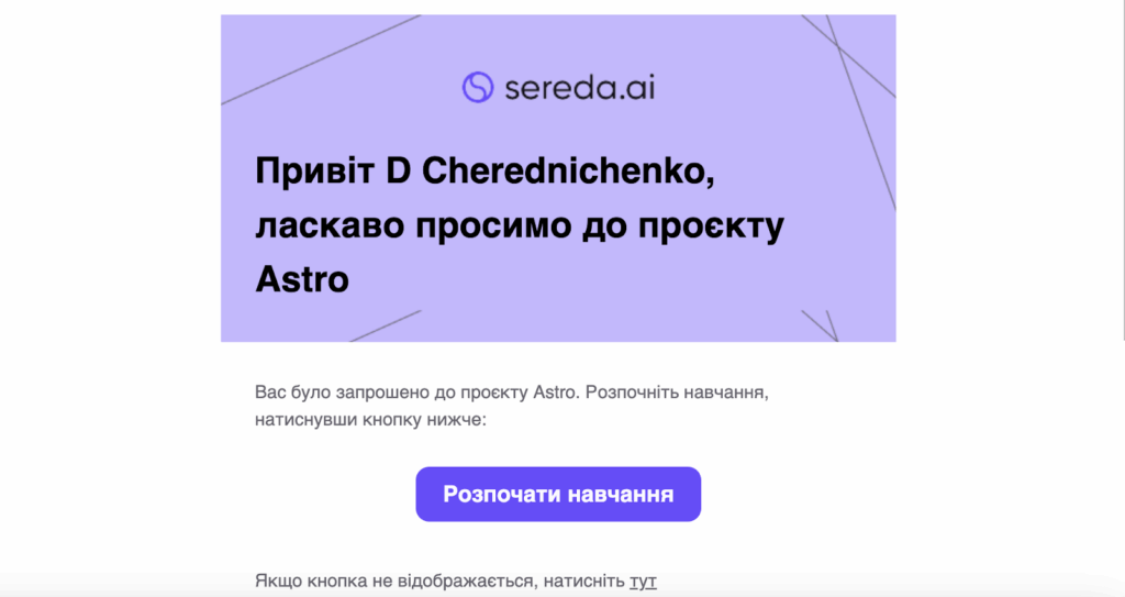 Як тільки адміністратор додасть вас до свого проєкту, ви отримаєте електронний лист із запрошенням.