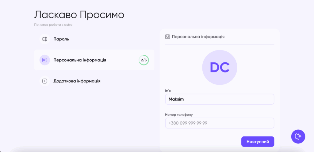 Вкажіть свої персональні дані (ім’я та номер телефону).
