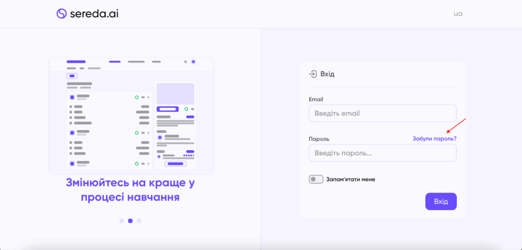 Якщо ви забули пароль від свого особистого кабінету, його можна відновити на сторінці входу, скориставшись опцією “Забули пароль?”.