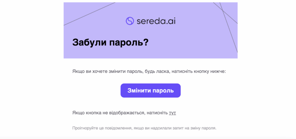 Перейдіть за посиланням у листі, щоб створити новий пароль.