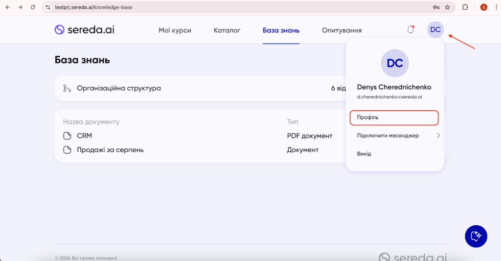 Розділ “Профіль” призначений для збереження та управління вашою персональною інформацією на платформі.