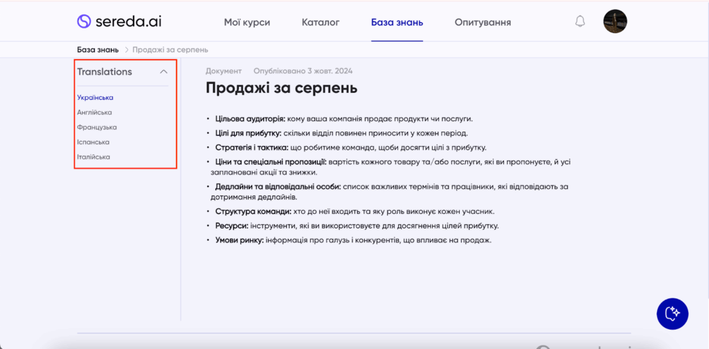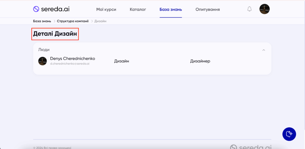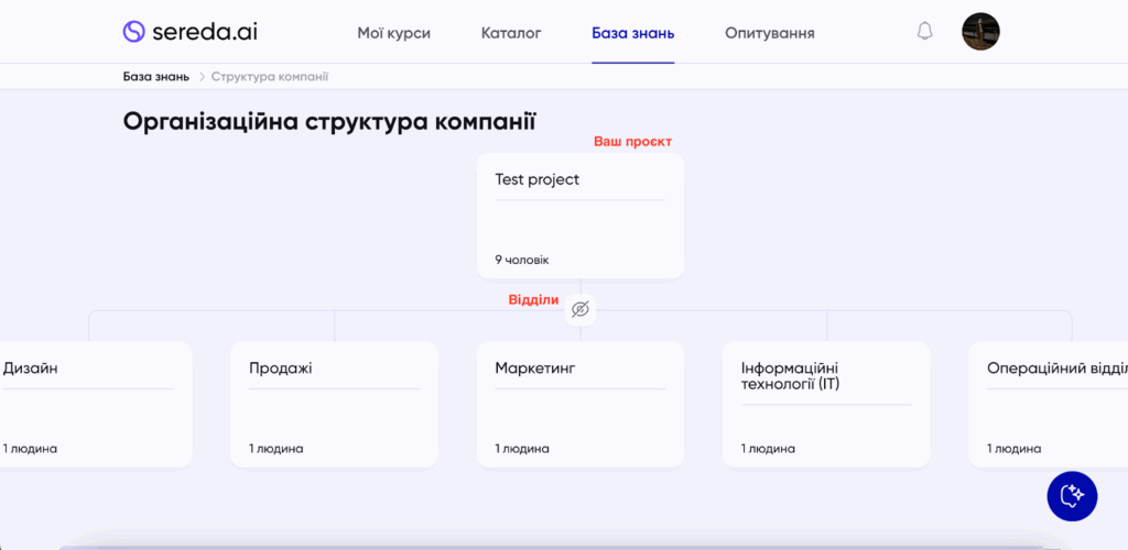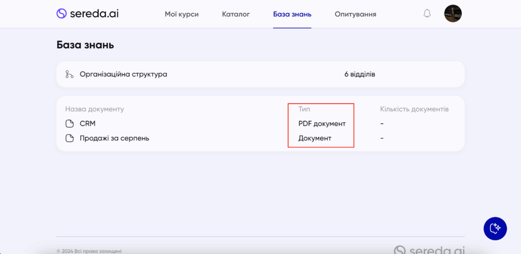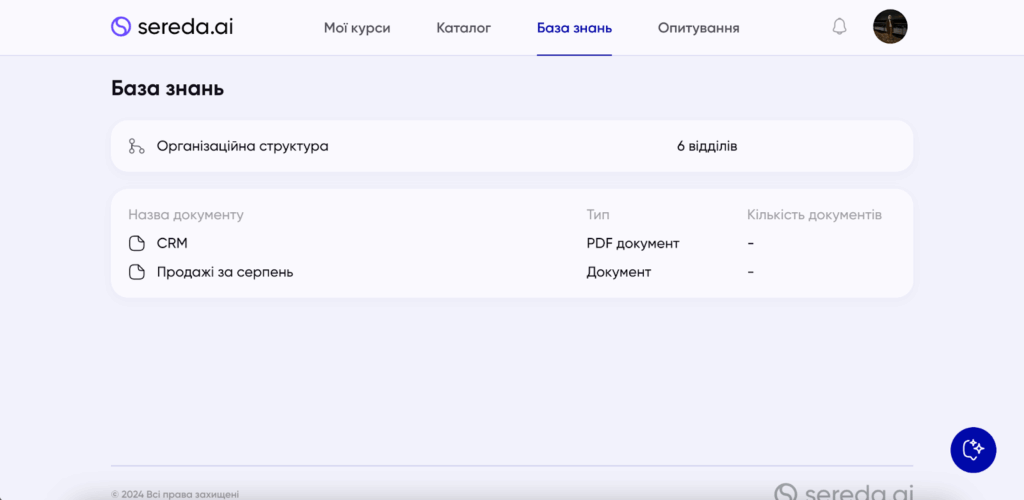 Розділ “База знань” створений для зберігання та впорядкування документів і матеріалів компанії. Це місце, де працівники мають доступ до необхідної та актуальної інформації.